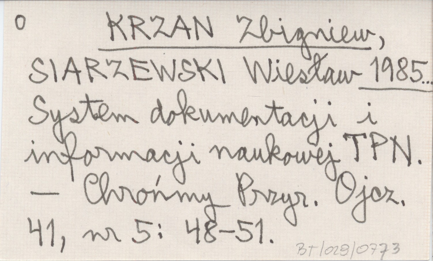 KRZAN Zbigniew SIARZEWSKI, Wiesław. ; 1985... System dokumentacji i informacji naukowej TPN.