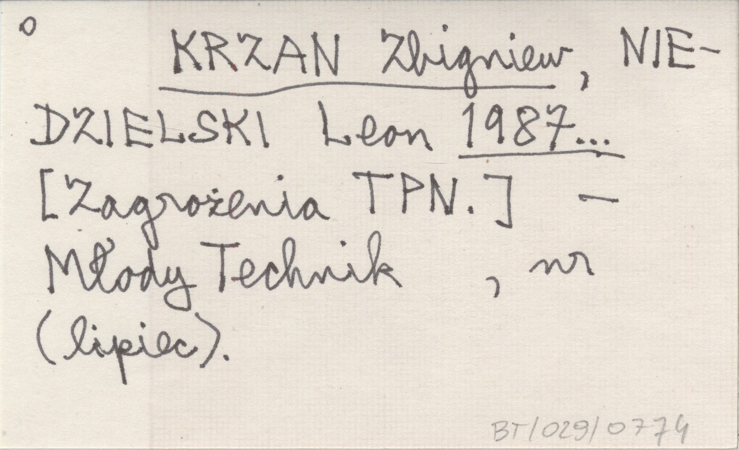 KRZAN Zbigniew NIEDZIELSKI, Leon. ; 1987... [Zagrożenia TPN.]