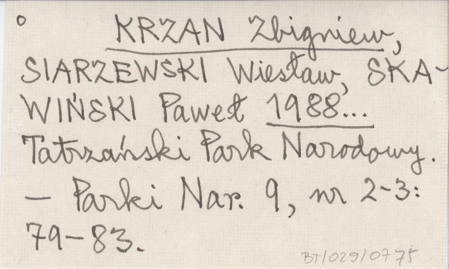 KRZAN Zbigniew SIARZEWSKI, Wiesław. ; SKAWIŃSKI, Paweł. ; 1988... Tatrzański Park Narodowy.