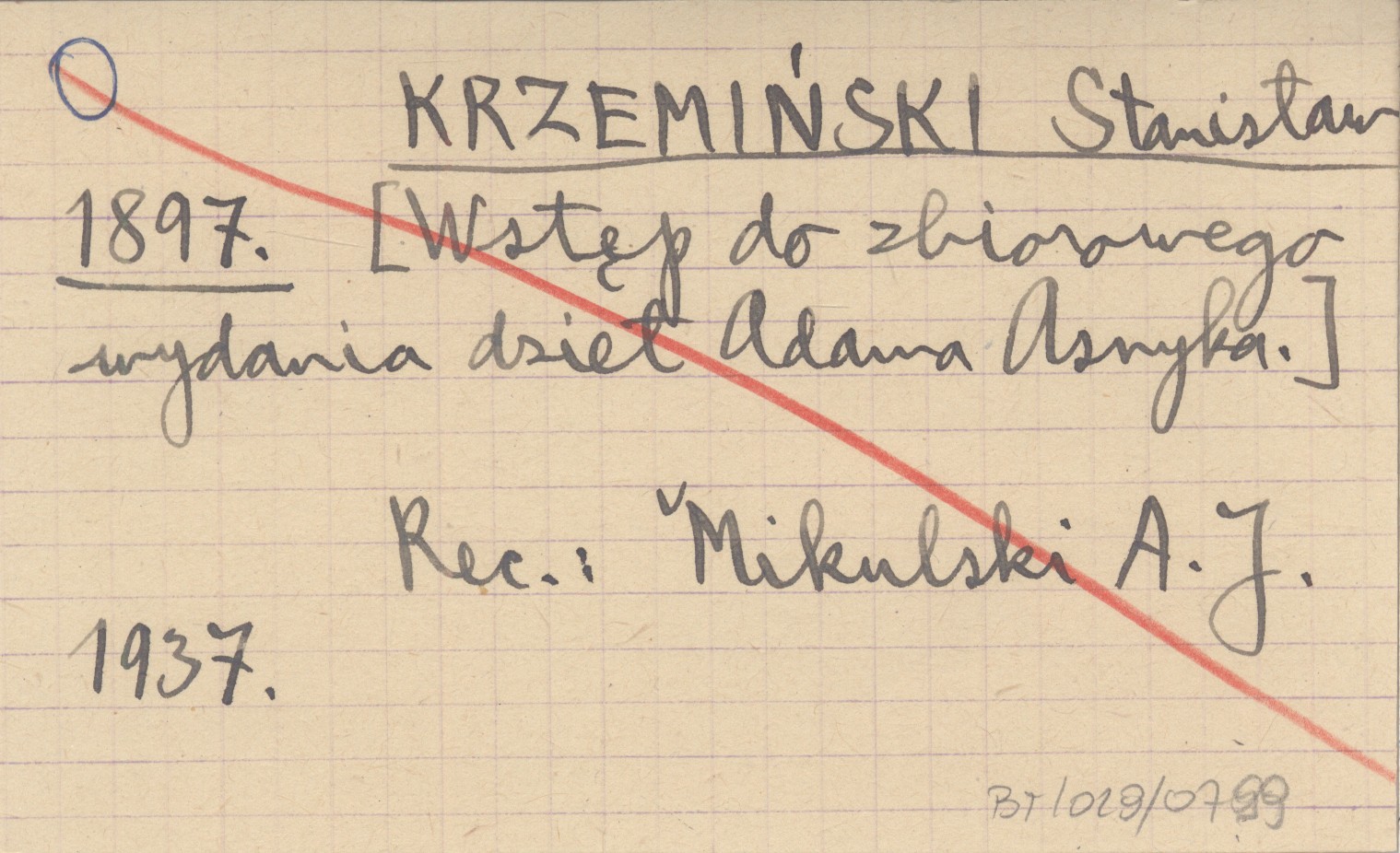 KRZEMIŃSKI Stanisław 1897 [Wstęp do zbiorowego wydania dzieł Adama Asnyka.]