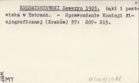 KRZEMIENIEWSKI S. 1905 Doświadczenia łąkowe w Tatrach.