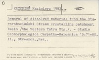 KRZEMIEŃ Kazimierz 1982... Removal of dissolved material from the Starorobociański Stream crystalline catchment basin (the Western Tatra Mts.).