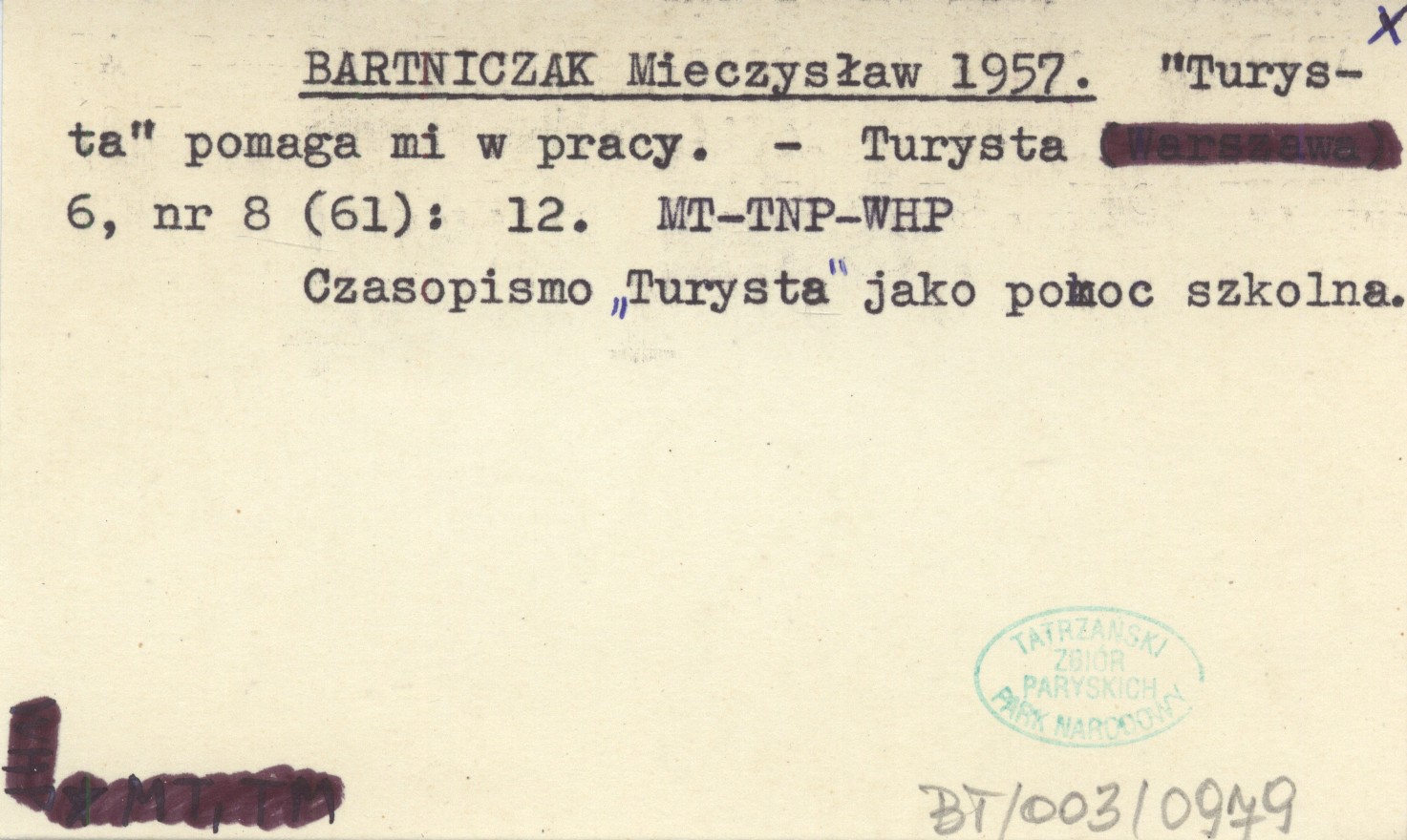 BARTNICZAK Mieczysław 1957 "Turysta" pomaga mi w pracy.