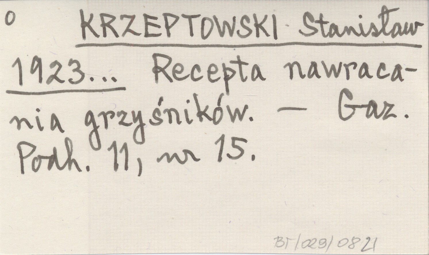 KRZEPTOWSKI Stanisław 1923... Recepta nawracania grzyśników.