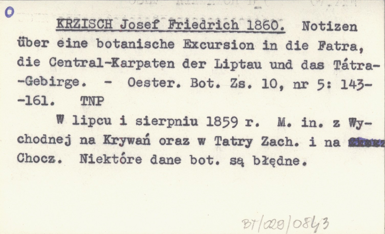 Österreichischen Botanischen Zeitschrift, 10, nr 5: 143-161. W lipcu i sierpniu 1859 r. M. in. z Wychodnej na Krywań oraz w Tatry Zachodnie i na Chocz. Niektóre dane botaniczne są błędne.