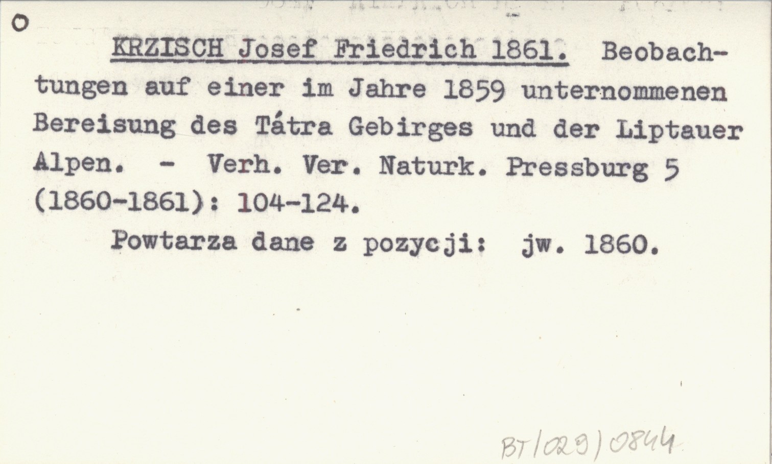 Verhandlungen des Vereins für Naturkunde (Pressburg) , 5 (1860-1861): 104-124. Powtarza dane z pozycji: jw. 1860