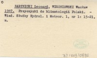 BARTNICKI Leonard WISZNIEWSKI, Wacław. ; 1947 Przyczynki do klimatologii Polski.