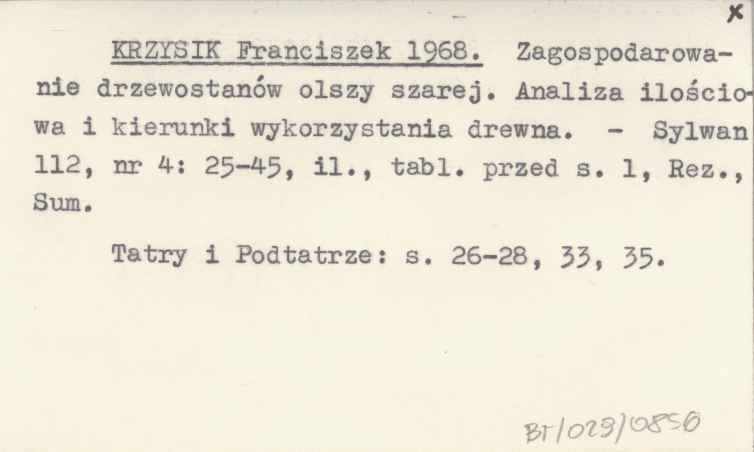 KRZYSIK Franciszek 1968 Zagospodarowanie drzewostanów olszy szarej. Analiza ilościowa i kierunki wykorzystania drewna.