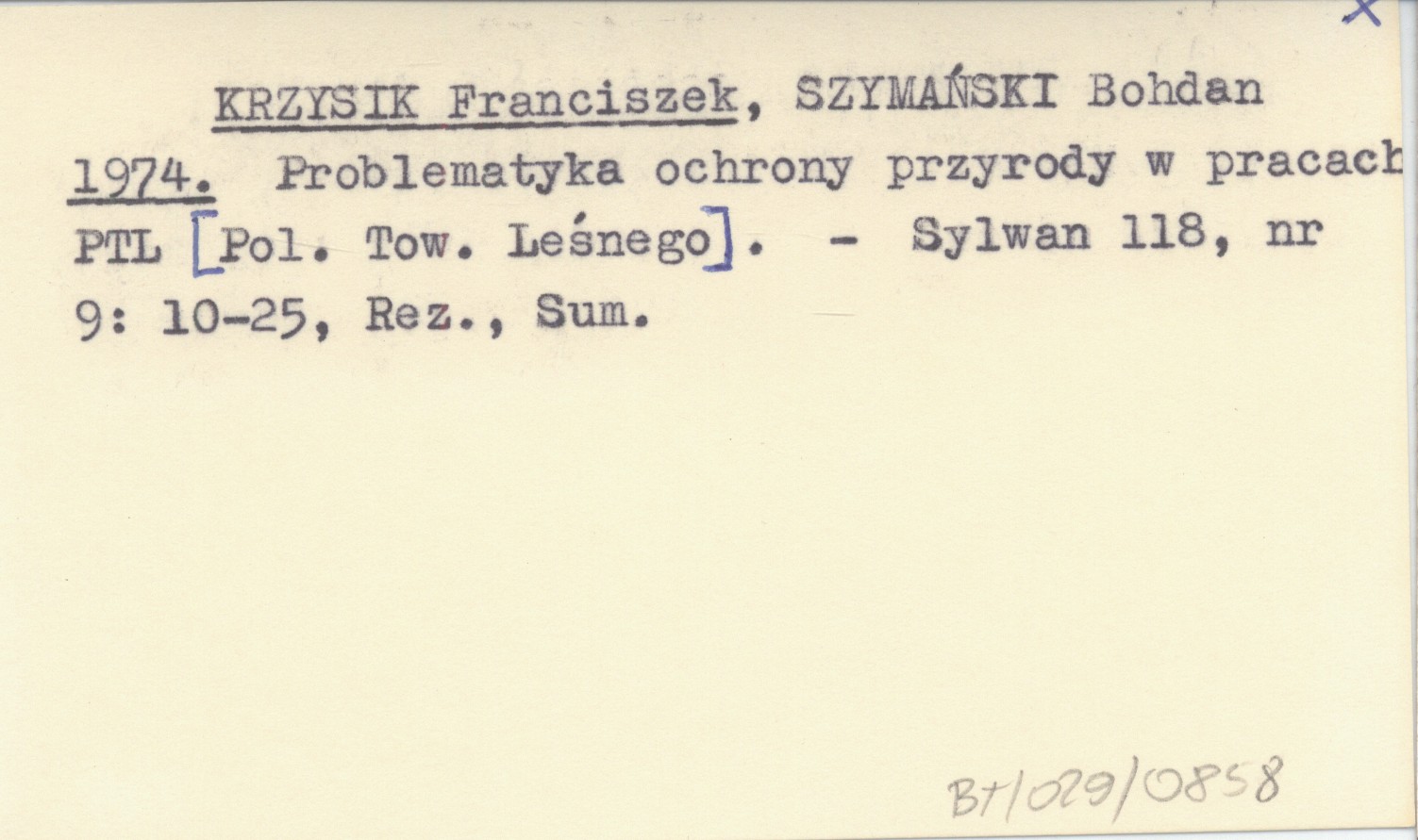 KRZYSIK Franciszek SZYMAŃSKI, Bohdan. ; 1974 Problematyka ochrony przyrody w pracach PTL [Pol. Tow. Leśnego].
