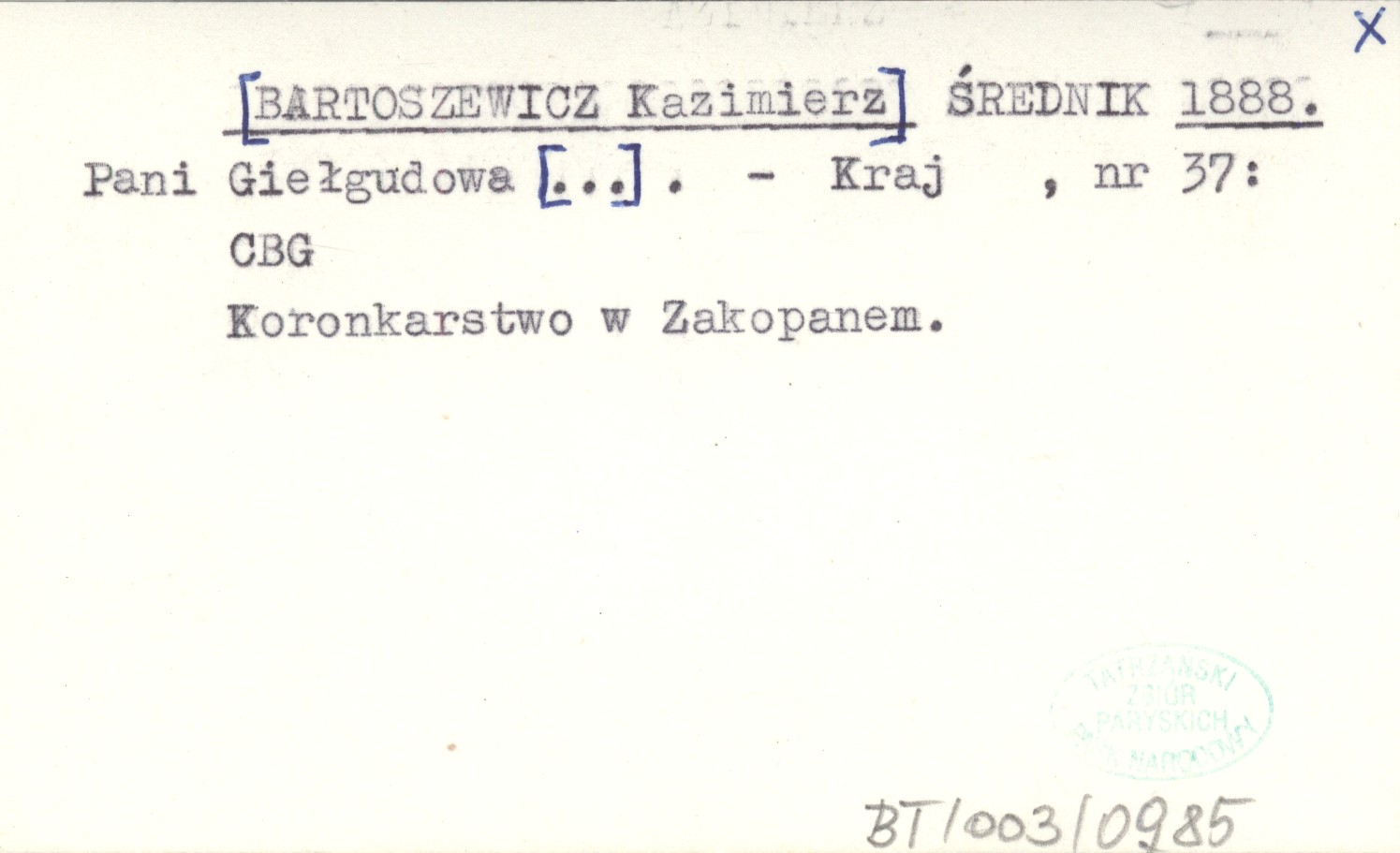 ŚREDNIK [BARTOSZEWICZ Kazimierz] 1888 Pani Giełgudowa [...].