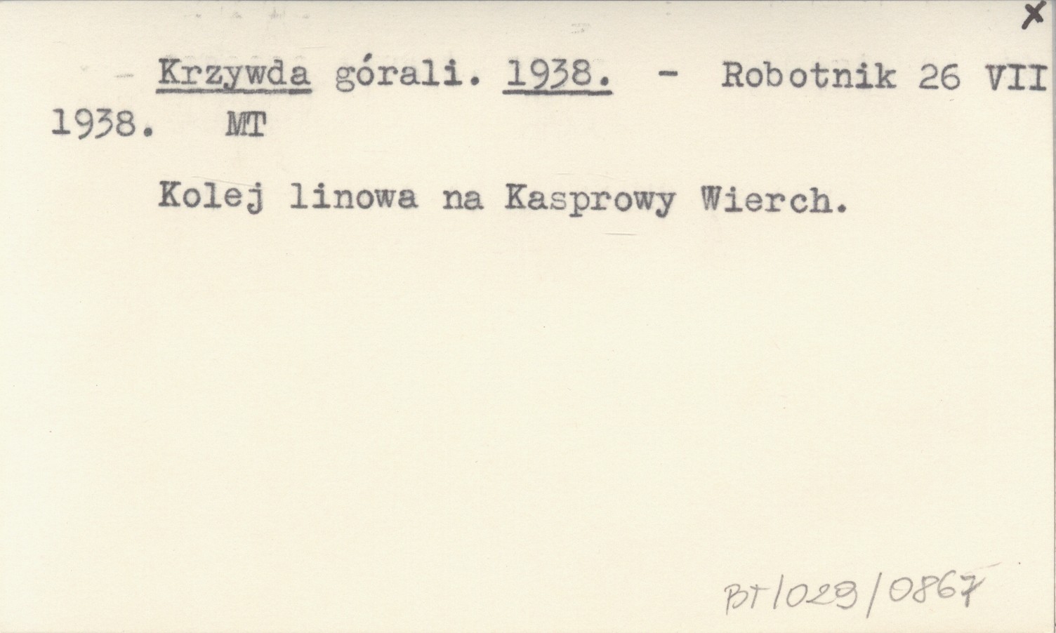 Robotnik, 26 VII 1938. Kolej linowa na Kasprowy Wierch.