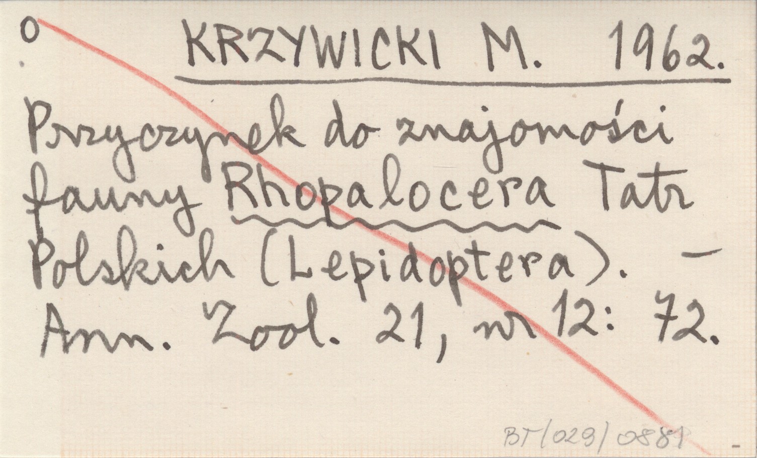 KRZYWICKI M. 1962 Przyczynek do znajomości fauny Rhopalocera Tatr Polskich (Lepidoptera).