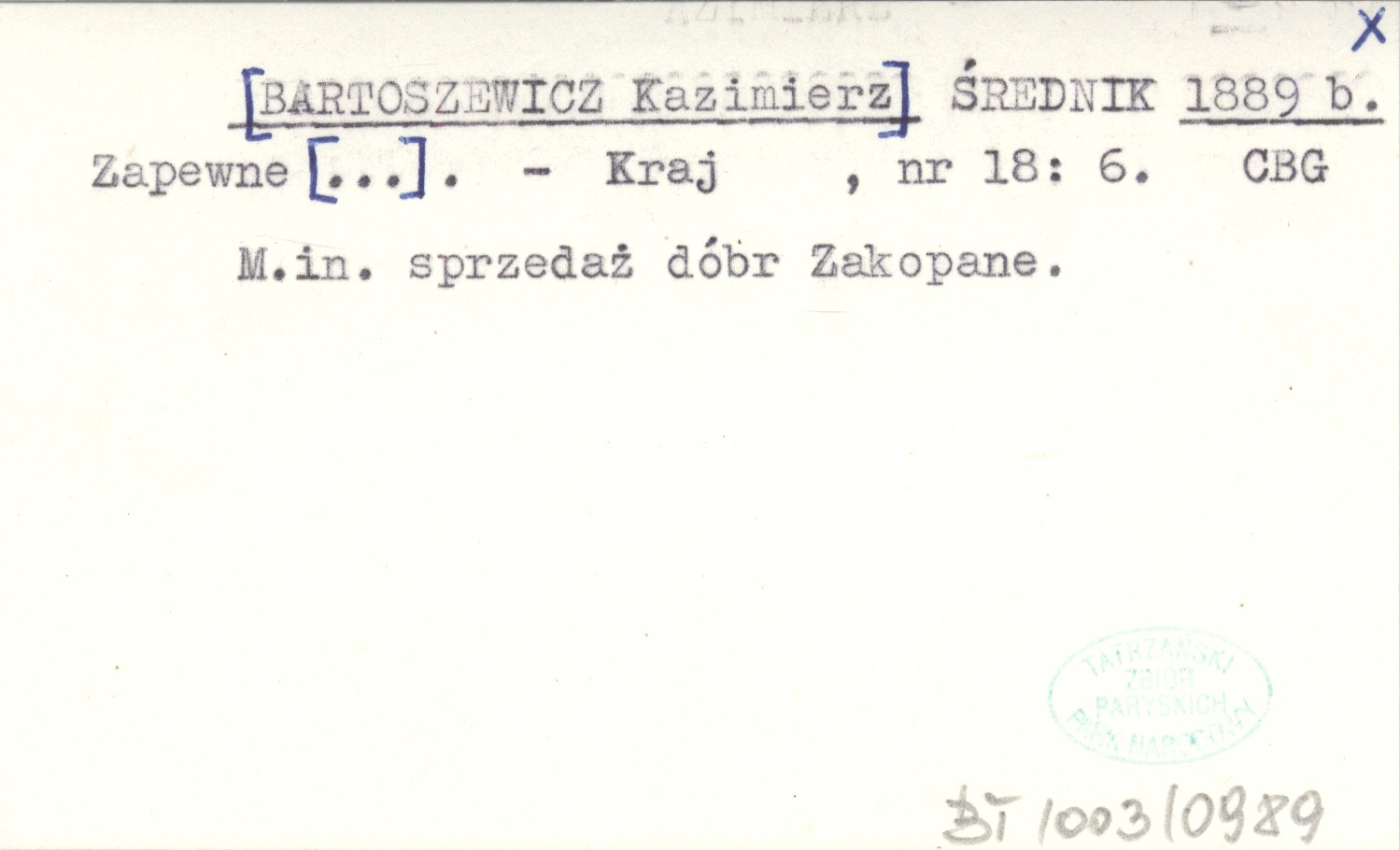 ŚREDNIK [BARTOSZEWICZ Kazimierz] 1889 b Zapewne [...].