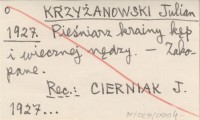 KRZYŻANOWSKI Julian 1927 Pieśniarz krainy kęp i wiecznej nędzy. Rzecz o Władysławie Orkanie.