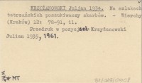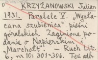KRZYŻANOWSKI Julian 1931 Paralele V. "Wyzłacena szubienica" pieśni góralskich. Zaginione podanie o Napierskim i "Marchołt".