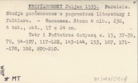 KRZYŻANOWSKI Juljan 1935 Paralele. Studja porównawcze z pogranicza literatury i folkloru.