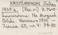KRZYŻANOWSKI Julian 1935 a [Rec. o:] H. Mortkowiczówna: Na drogach Polski. Warszawa 1934.