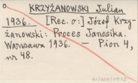 KRZYŻANOWSKI Julian 1936 [Rec. o:] Józef Krzyżanowski: Proces Janosika. Warszawa 1936.