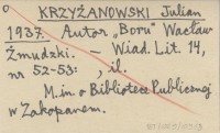 KRZYŻANOWSKI Julian 1937 Autor "Boru" Wacław Żmudzki.