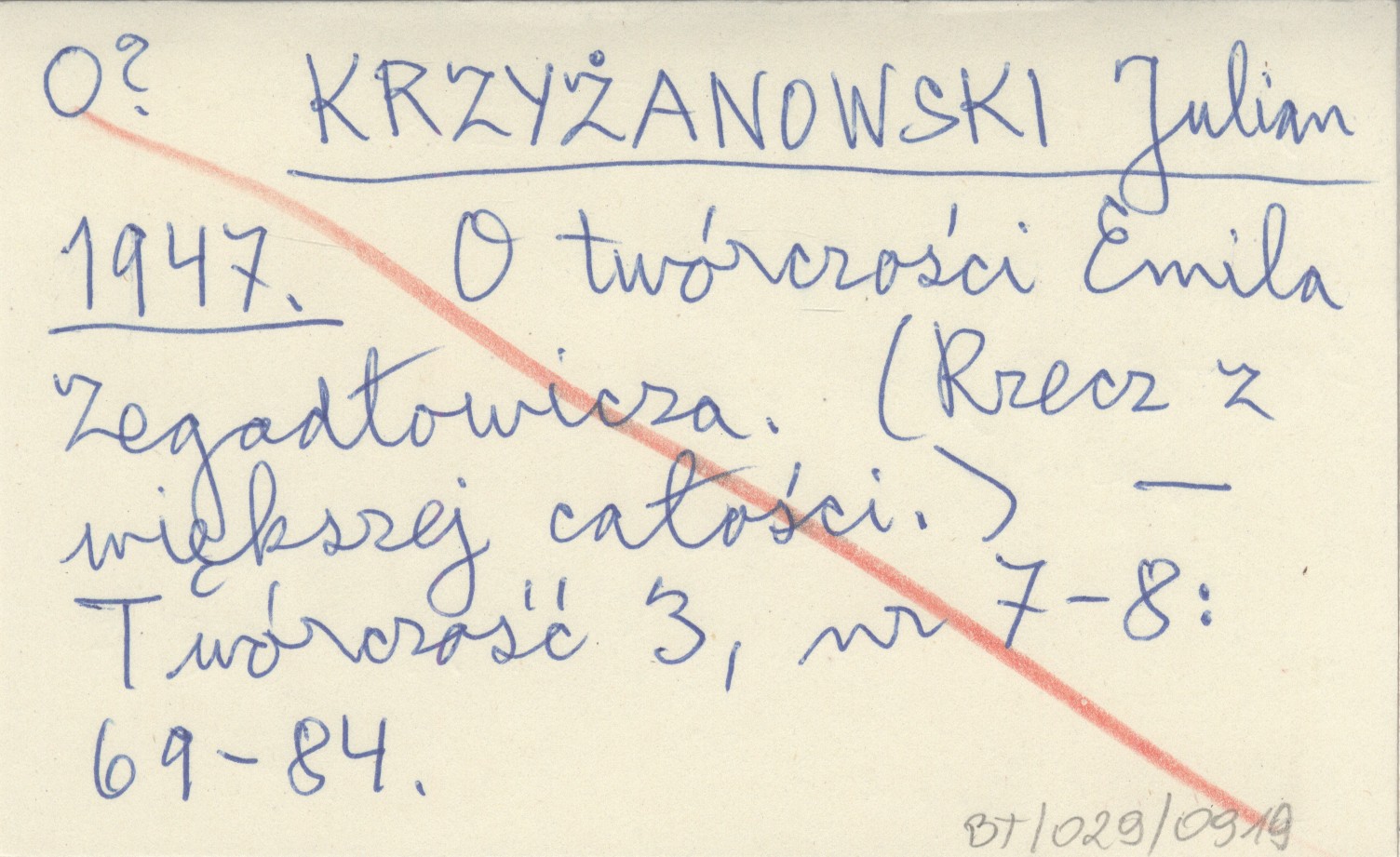 KRZYŻANOWSKI Julian 1947 O twórczości Emila Zegadłowicza. (Rzecz z większej całości).