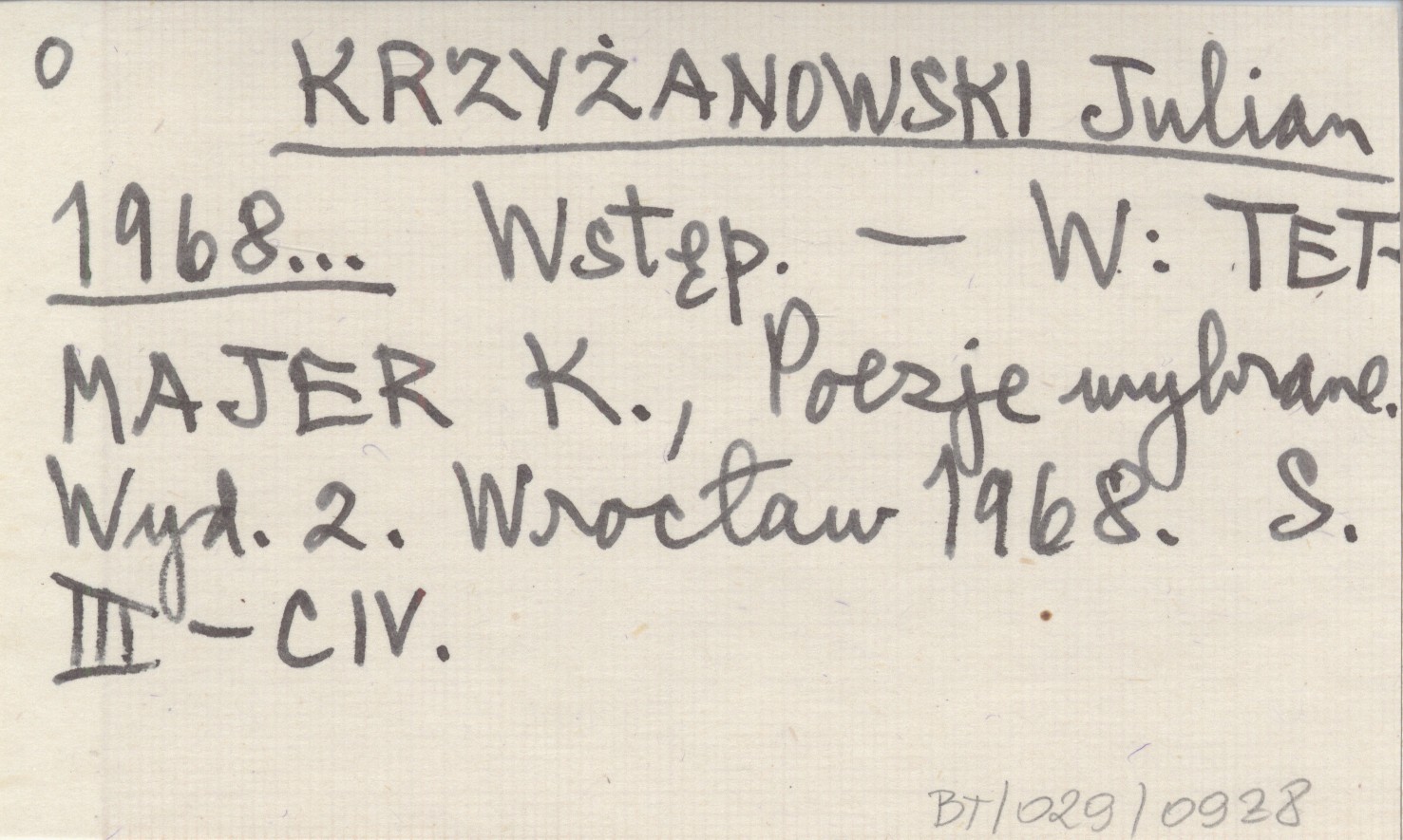 TETMAJER K., Poezje wybrane.WYD: 2 Wrocław , S. III-CIV.