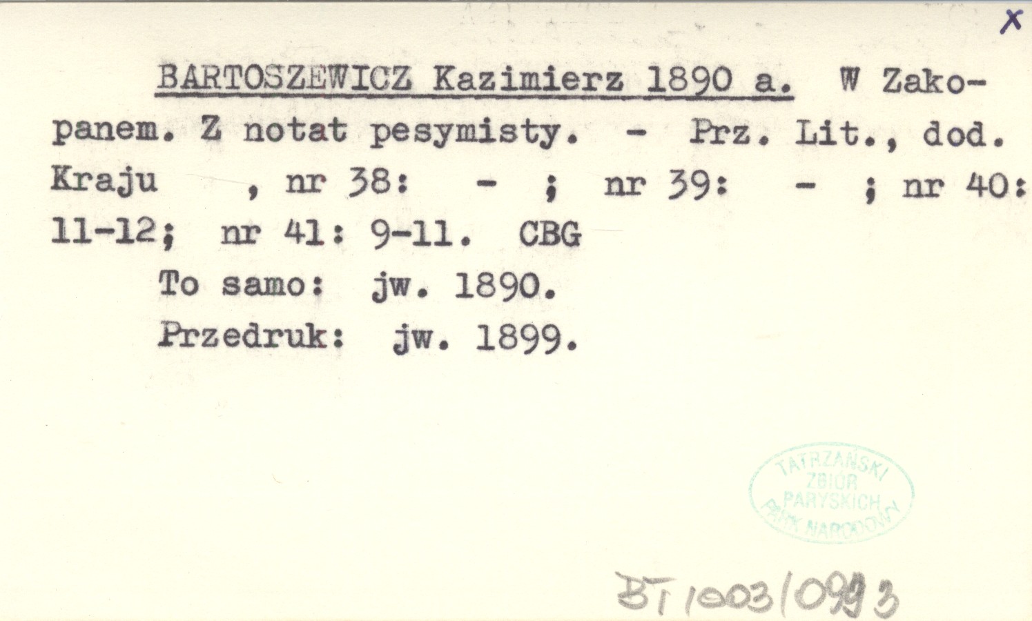 BARTOSZEWICZ Kazimierz 1890 a W Zakopanem. Z notat pesymisty.