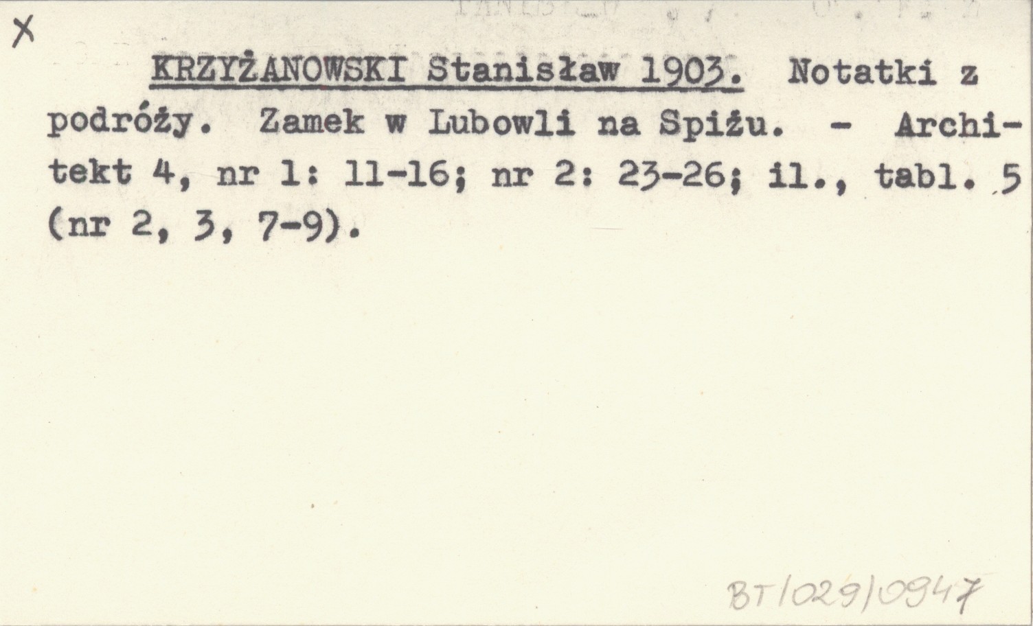 KRZYŻANOWSKI Stanisław 1903 Notatki z podróży. Zamek w Lubowli na Spiżu.