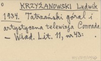 KRZYŻANOWSKI Ludwik 1934 Tatrzański góral i artystyczna telewizja Conrada.