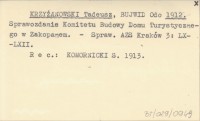 KRZYŻANOWSKI Tadeusz BUJWID, Odo. ; 1913 a Sprawozdanie Komitetu Budowy Domu Turystycznego w Zakopanem.