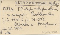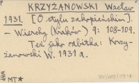 KRZYŻANOWSKI Wacław 1931 a [O stylu zakopiańskim.]