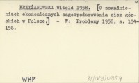 KRZYŻANOWSKI Witold 1958 [O zagadnieniach ekonomicznych zagospodarowania ziem górskich w Polsce.]