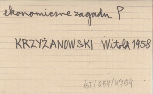 KRZYŻANOWSKI Witold 1958 [O zagadnieniach ekonomicznych zagospodarowania ziem górskich w Polsce.]