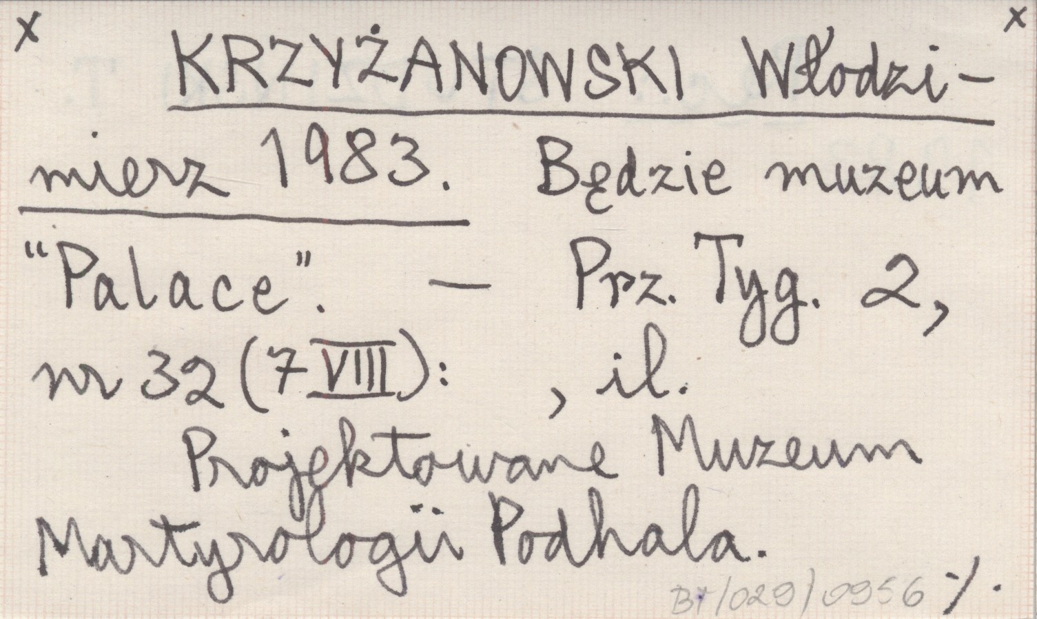 KRZYŻANOWSKI Włodzimierz 1983 Będzie muzeum "Palace".