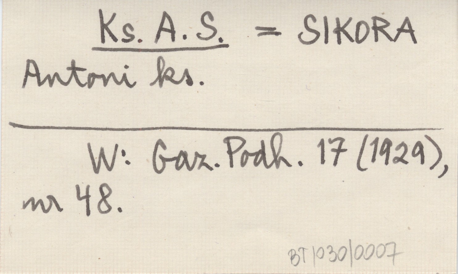 Ks. A. S. SIKORA Antoni ks. Gazeta Podhalańska 17 (1929), nr 48.