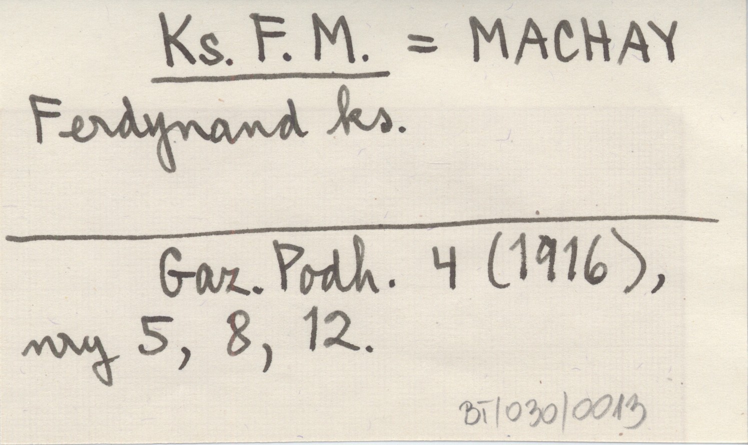 Ks. F. M. MACHAY Ferdynand ks. Gazeta Podhalańska 4 (1916), nr 5, 8, 12.