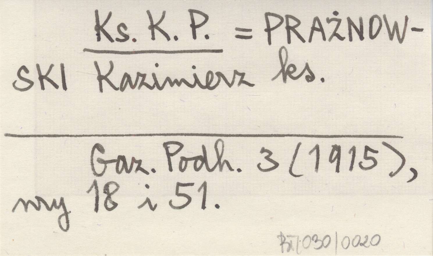 Ks. K. P. PRAŻNOWSKI Kazimierz ks. Gazeta Podhalańska 3 (1915), nr 18 i 51.
