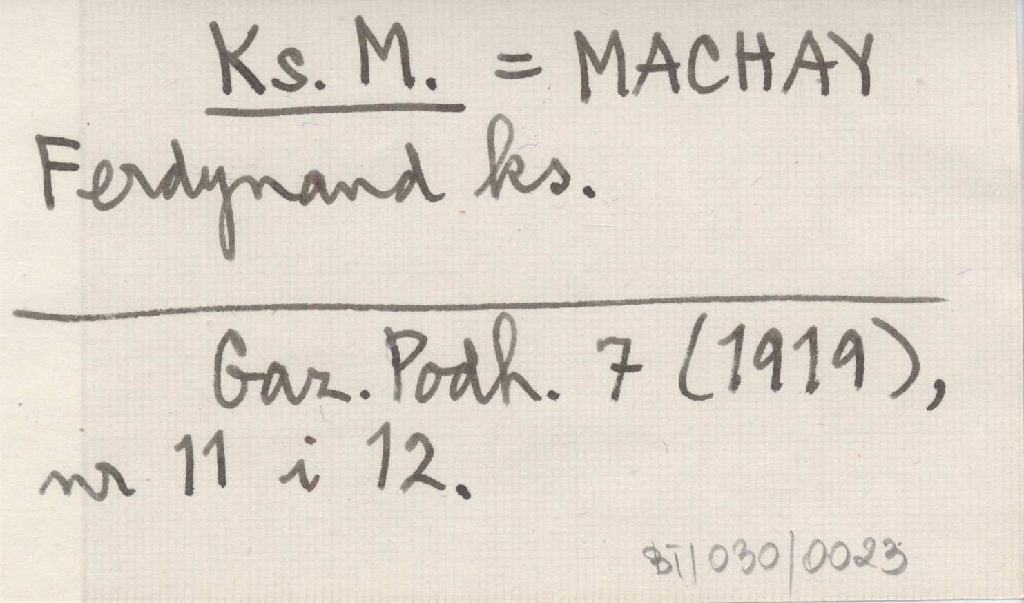 Ks. M. MACHAY Ferdynand ks. Gazeta Podhalańska 7 (1919), nr 11 i 12.