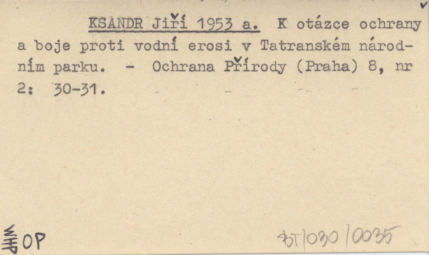KSANDR Jiří 1953 a K otázce ochrany a boje proti vodní erosi v Tatranském národním parku.