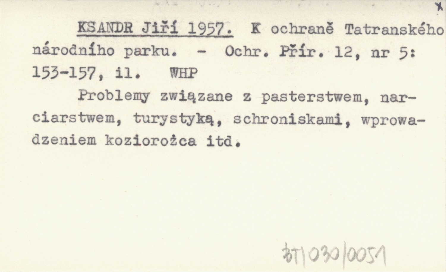 KSANDR Jiří 1957 K ochraně Tatranského národního parku.