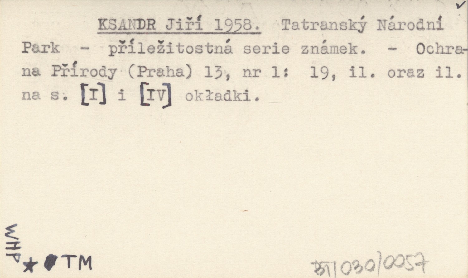 KSANDR Jiří 1958 Tatranský Národní Park - příležitostná serie známek.
