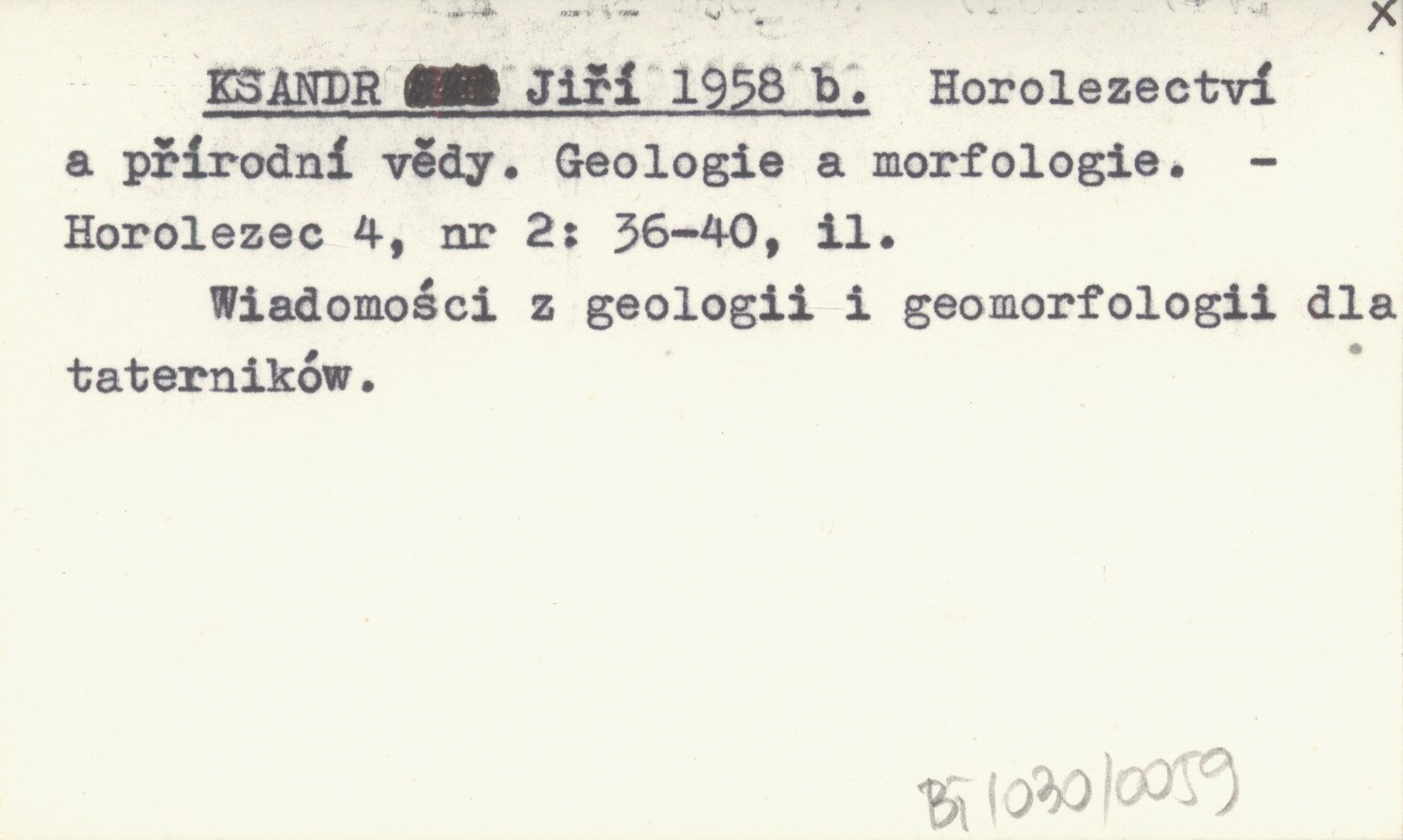 KSANDR Jiří 1958 b Horolezectví a přírodní vědy. Geologie a morfologie.