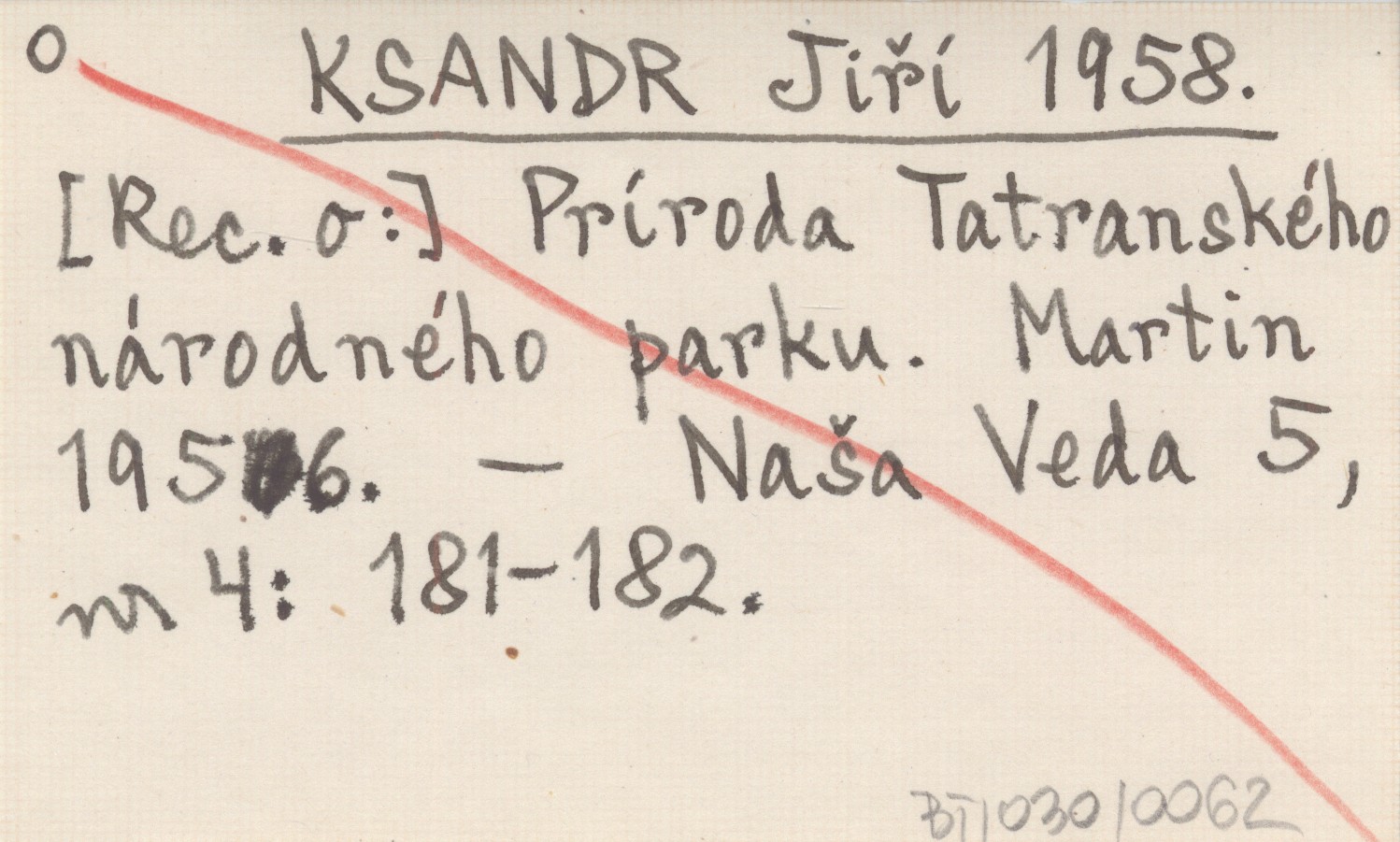 KSANDR Jiří 1958 [Rec. o:] Príroda Tatranského národného parku. Martin 1956.
