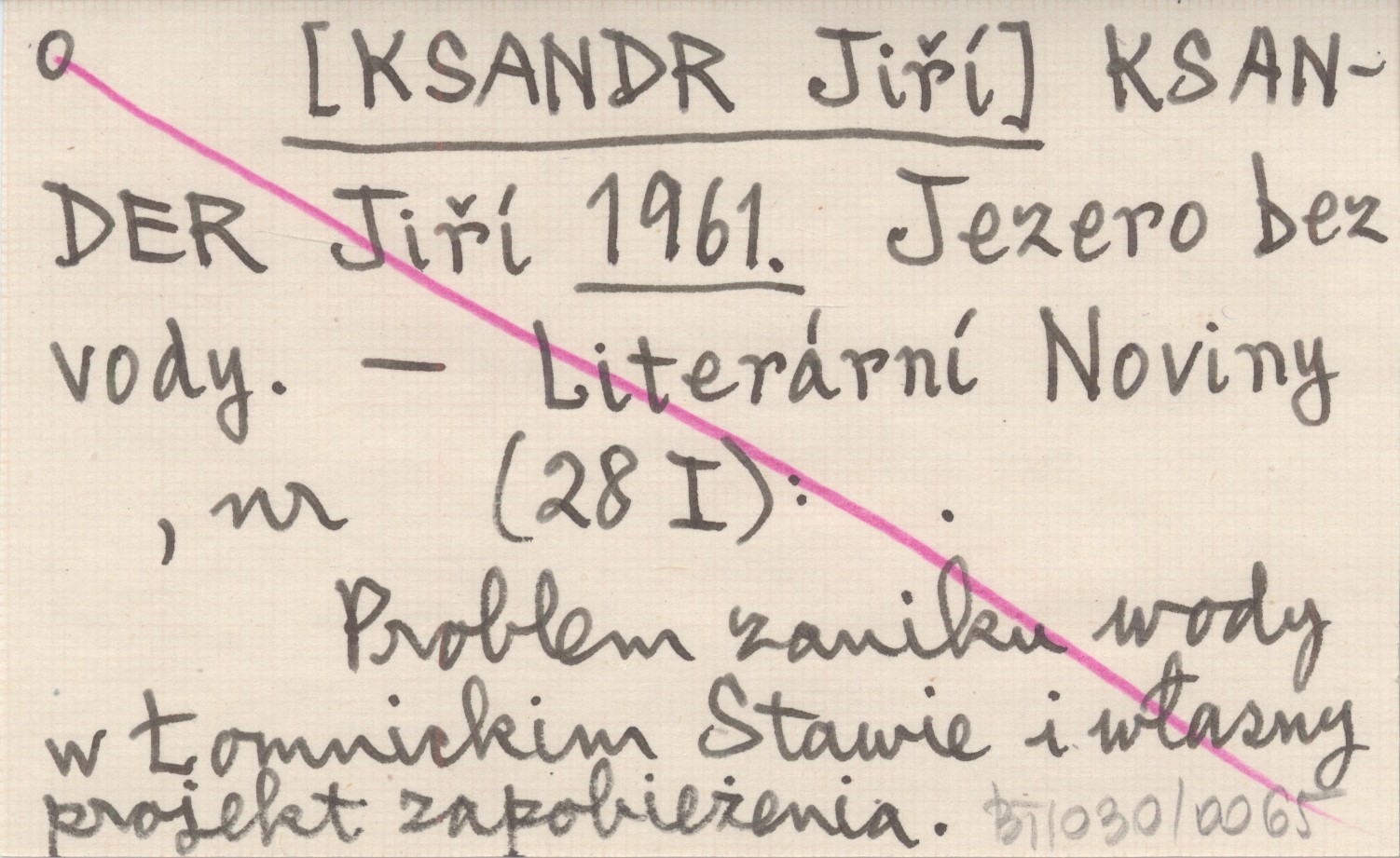 Literární Noviny, 28 I. Problem zaniku wody w Łomnickim Stawie i własny projekt zapobieżenia.