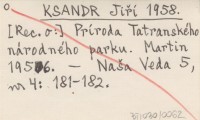 KSANDR Jiří 1958 [Rec. o:] Príroda Tatranského národného parku. Martin 1956.