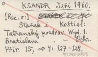 KSANDR Jiří 1960 [Rec o:] Staňek i Koątial: Tatranský pozdrav. Wyd. 1. Bratislava.