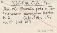 KSANDR Jiří 1960 [Rec o:] Sborník prác o Tatranskom národnom parku. T. 3.