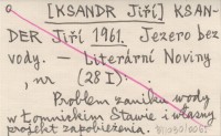 KSANDER Jiří [KSANDR Jiří] 1961 Jezero bez vody.