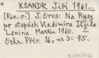 KSANDR Jiří 1961... [Rec o:] J. Oros: Na Rysy po stopách Vladimíra Iµjiča Lenina. Martin 1960.