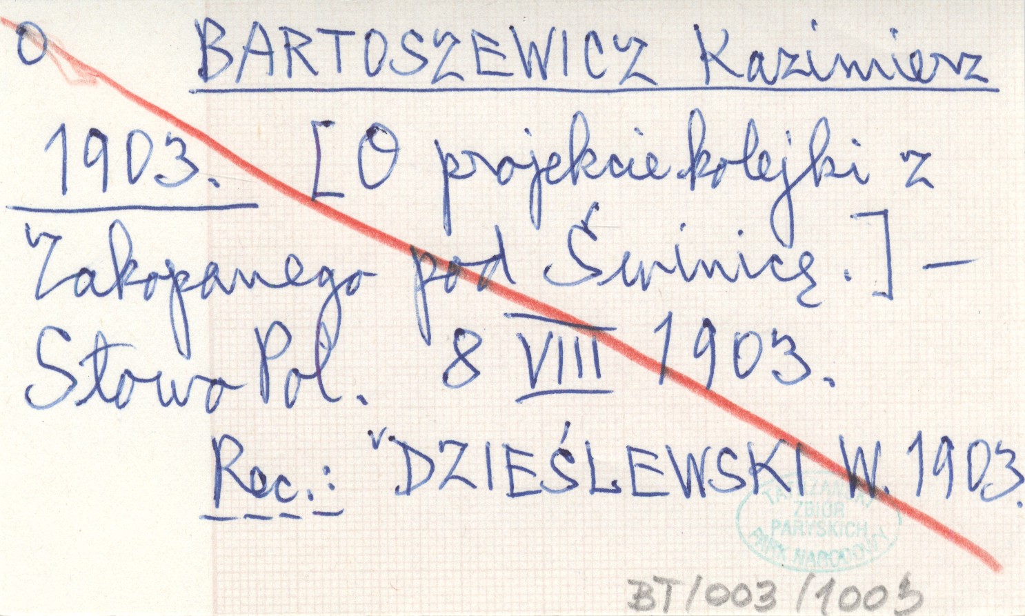 BARTOSZEWICZ Kazimierz 1903 [O projekcie kolejki z Zakopanego pod Świnicę.]