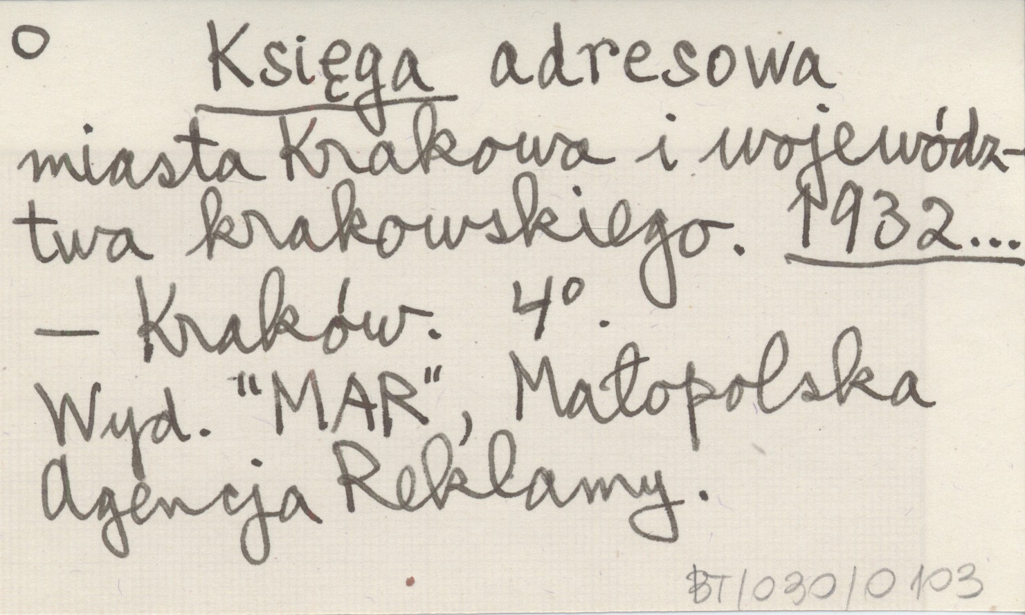 Księga adresowa miasta Krakowa i województwa krakowskiego. 1932...